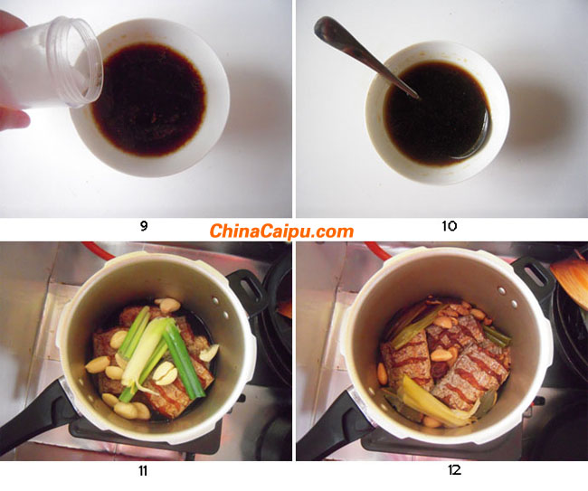 3.步驟10里準備好的料汁倒入高壓鍋中後,沒過食材 道菜譜www.daocaipu.com表面的2/3處即可。料汁在沸騰的過程中,仍然會將味道浸在頂層的魚肉中,無須放太多的湯汁就已經很入味了。