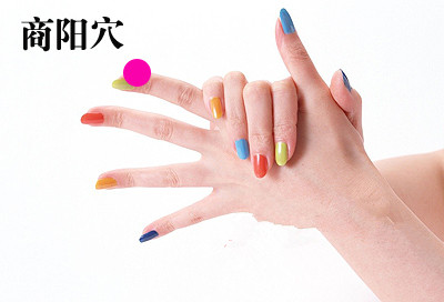 商陽穴位於食指尖端橈側指甲旁。傳統醫學認為,刺激該穴具有明顯的強精壯陽之效,可延緩性衰老。可在上下班乘公共汽車或電車時,用食指鉤住車內的扶手或吊環;或在閒暇時兩手食指相鉤反覆牽拉;或利用傘柄等按摩食指。
