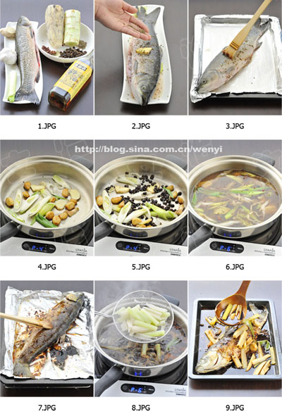 1.將草魚去鱗去鰓,去除內臟後洗淨瀝干水分。大蔥切段,姜切片,大蒜去皮。