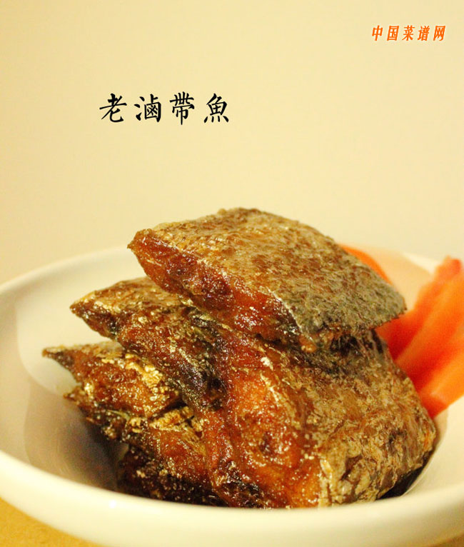 家裡剛好有上次鹵牛腱子時候存下的老鹵,充滿了肉香的滷汁,用來料理魚類,又使本身油脂含量相對不豐富的魚肉更加美味。不過鹵完魚肉後的滷汁一般就棄之不用了,帶有腥味,下次再用來鹵東西也不好吃了。這道老鹵帶魚採用先炸再鹵再復炸的做法,第一次炸使魚肉的水分發揮掉一部分,便於第二步吸收滷汁,第二次復炸則將前面吸收的滷汁牢牢鎖住,想不好吃都難啊!