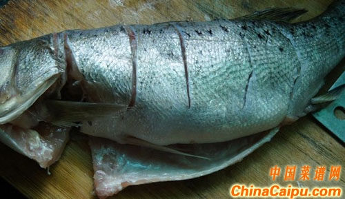 給鱸魚打深一點的花刀,一邊最好割開,那樣鱸魚才能趴牢,呵呵