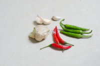 2準備的調料紅綠尖椒,大蒜,生薑,