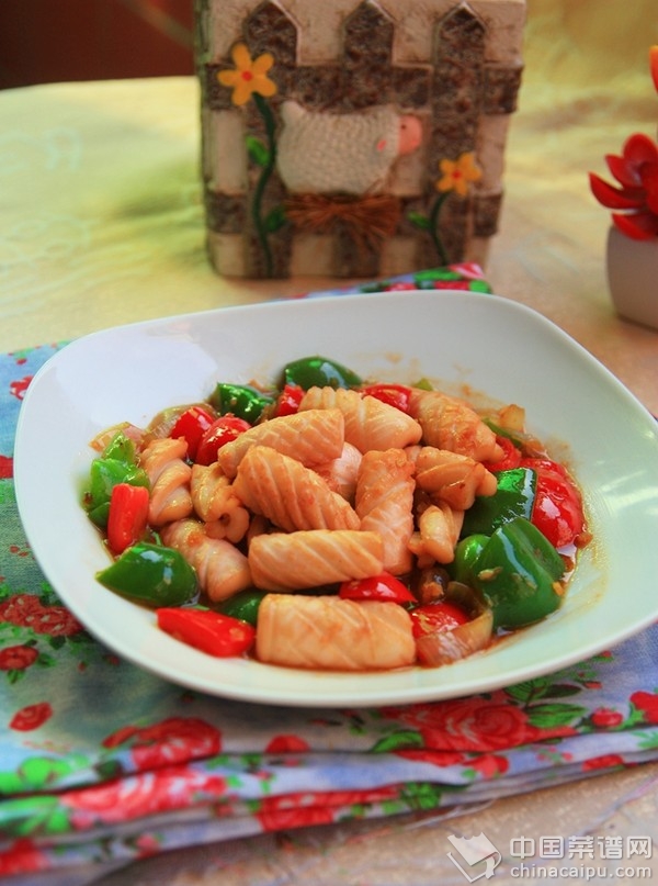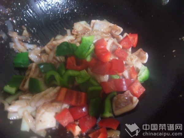 9.最後放入彩椒,炒熟,加鹽調味即可