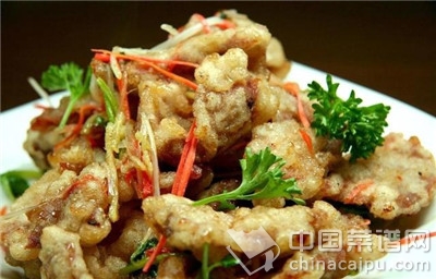 4.待油溫升至七八成熱,再下鍋復炸至色呈金黃且外表酥脆,撈出;