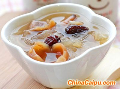 1.銀耳用清水泡發後,剪去蒂部,撕碎成小朵;